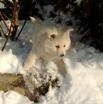 ist die Henne im (Hunde)korb. Eine äußerst temperamentvolle Hundedame, die sich von ihren 7 Brüdern nicht unterkriegen läßt...