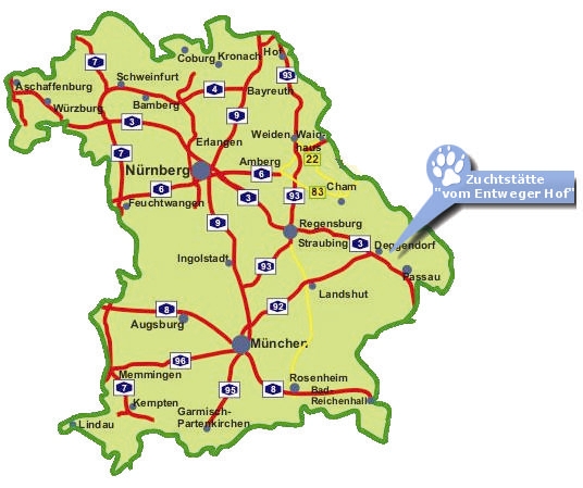 Wenn Ihr uns mal besuchen möchtet, Fragen habt oder Ihr Informationsmaterial von unseren Hunden wünscht, ruft uns einfach an: 08545/1065 bzw.mobil 0170-5342513 an oder schreibt eine Mail an: weisseschaeferhun.de@freenet.de Wir wohnen in der Nähe der A3 (E56) zwischen Deggendorf und Passau; fast an der Ausfahrt Garham. Entweder wartet Ihr auf uns am Pendlerparkplatz direkt neben der Autobahnauffahrt oder für den Fall, dass Ihr euch selber auf die Socken machen wollt, findet Ihr unten Landkarten (durch anklicken wird der Maßstab vergrößert...)  Bis bald also...